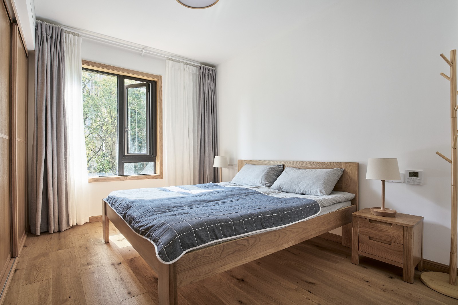 自然安寧的臥室,營(yíng)造理想的睡眠環(huán)境。整面的儲(chǔ)物柜保證房間的干凈整潔。