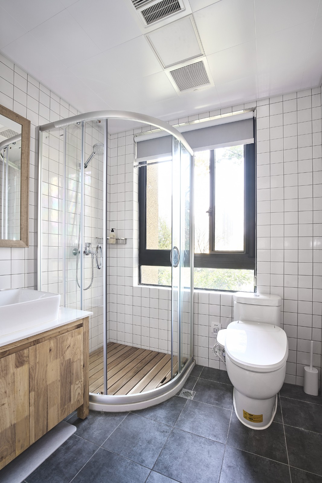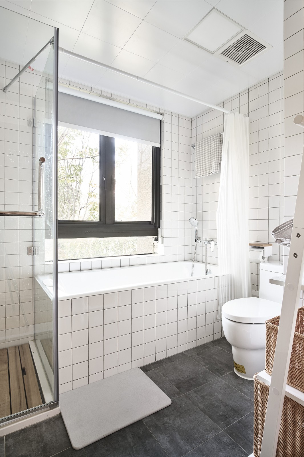 日式小清新風(fēng),小白磚營(yíng)造復(fù)古潮流,木色元素增添自然氣息。干濕分離,整潔易打理。